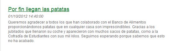 La Cofradía de Estudiantes ha colaborado en fechas recientes con la aportación de una tonelada de patatas al Banco de Alimentos de Almería.