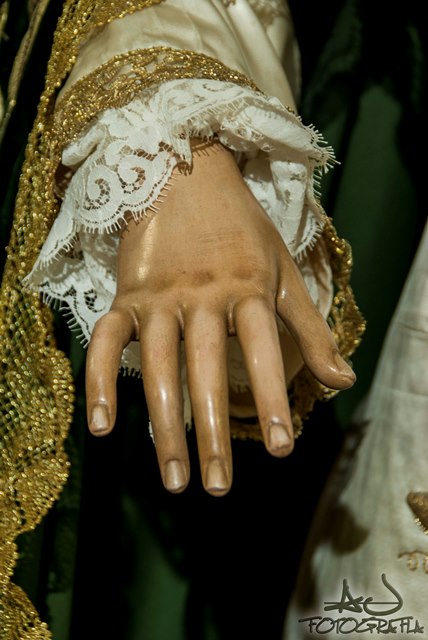 Hay que destacar que ese día, y durante todo el mes de mayo, la Virgen del Amor y la Esperanza lució una saya cedida por la hermana Cofradía del Huerto de Granada, perteneciente a su titular mariana, la Virgen de la Amargura. Sirvan las fotografías ilustrativas de este besamanos como agradecimiento sincero y profundo a la Hermandad del Huerto de Granada y como prueba de la confraternidad entre las hermandades.