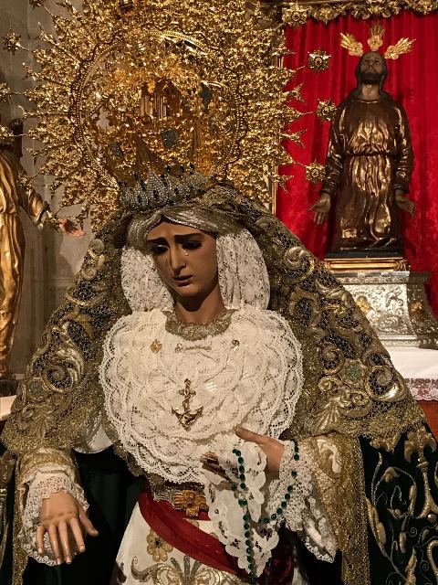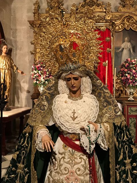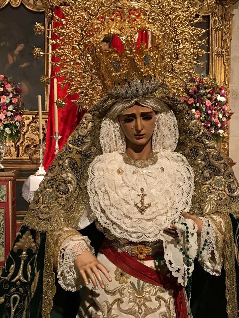 • Detalles: Sobre sus sienes, la Stma. Virgen luce una tiara de plata y piedras blancas y verdes, que el que fuera Hermano Mayor Honorario, D. Pedro Pavón Espín, regaló en el año 1975, luciéndola en la salida procesional de ese año, y en puntuales ocasiones, pero que desde hace más de dos décadas se encontraba en desuso.