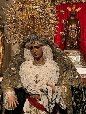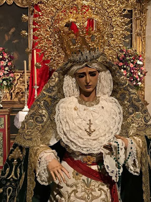 Estrena pañuelo de encaje en punto de duquesa del siglo XIX recientemente donado por un devoto de la Stma. Virgen.