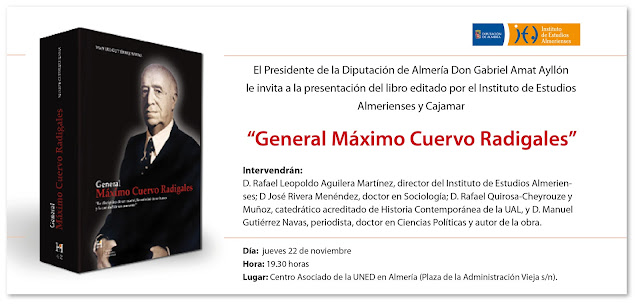 Nuestro Hermano y Diputado de Comunicación y Relaciones Institucionales, Manuel Gutiérrez Navas, presentará su obra sobre la figura del General Máximo Cuervo el próximo jueves 22 de noviembre a las 19:30 horas en el Salón de Actos de la UNED.